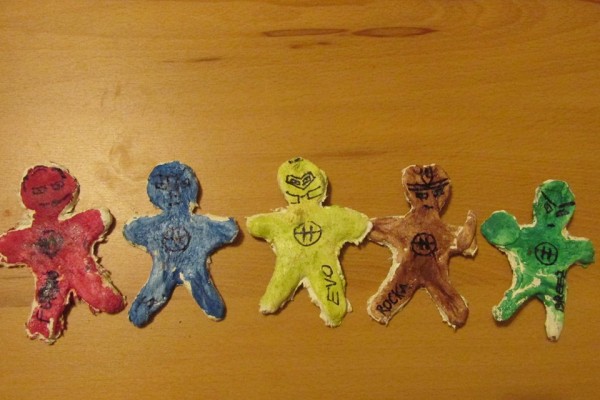 - maľovanie vyschnutých panáčikov: menšie deti si môžu panáčikov vymaľovať aj prstovými farbami jednoducho prstom. Lepšie tým preskúmajú povrch figúrky a maľovanie tak bude pre nich ľahšie. Staršie deti môžu použiť štetec.